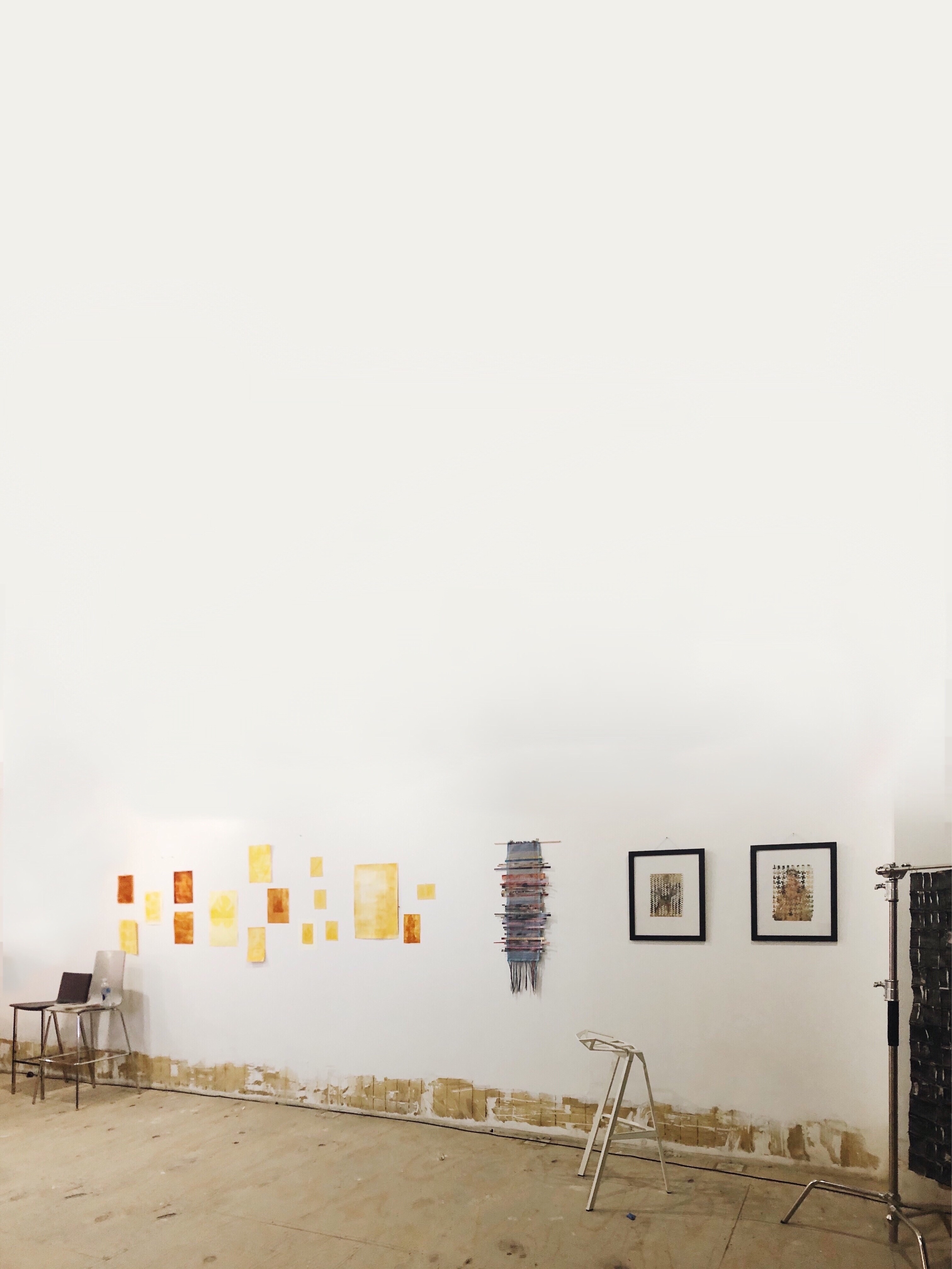 Showing two woven works, one tapestry, the ‘Redemption’ series and a collection of anthotypes.
